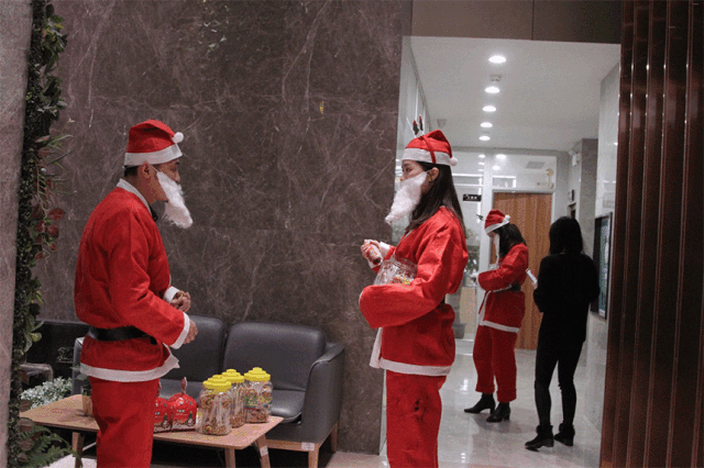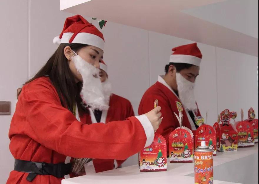 圣誕老人們齊聚在中庭裝飾集團(tuán)
