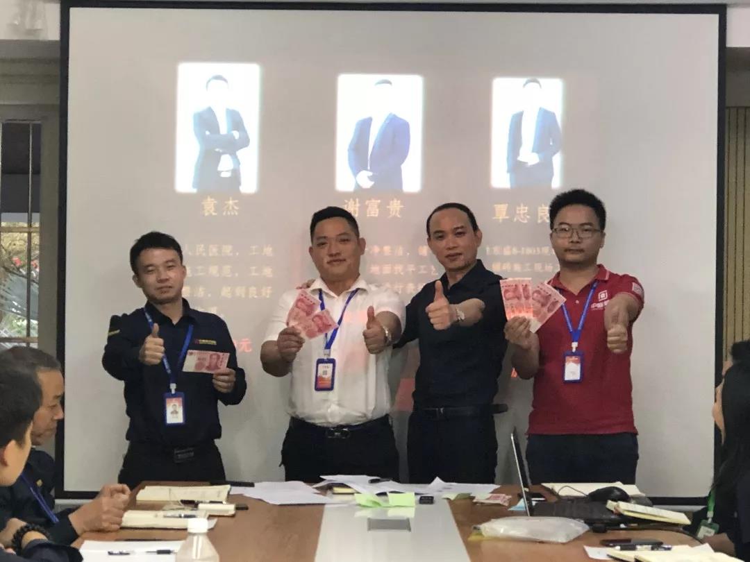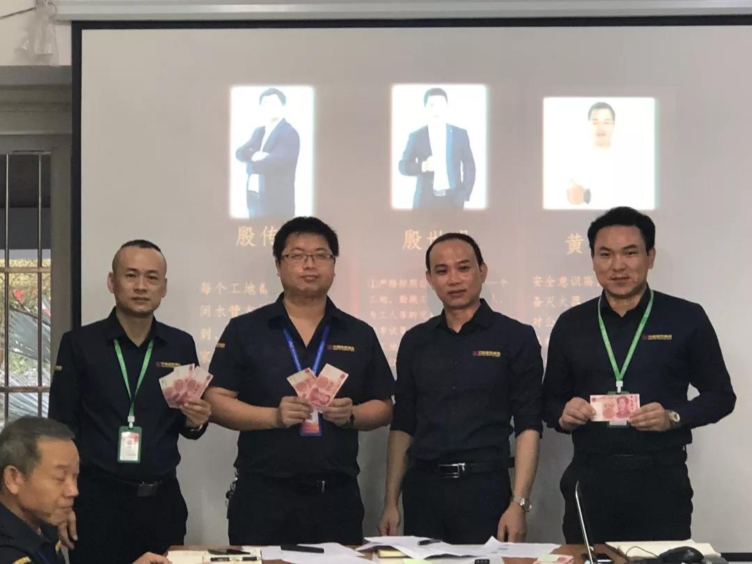 吳總(右一)為項目經(jīng)理殷傳高頒發(fā)月度獎金