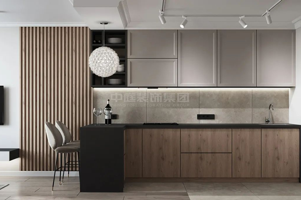 本案總面積90平,整體以灰白色為基調,配合木色點綴和燈光設計,使得室內光線明亮而溫暖,注重“家”的打造,給人溫馨舒適的感覺。