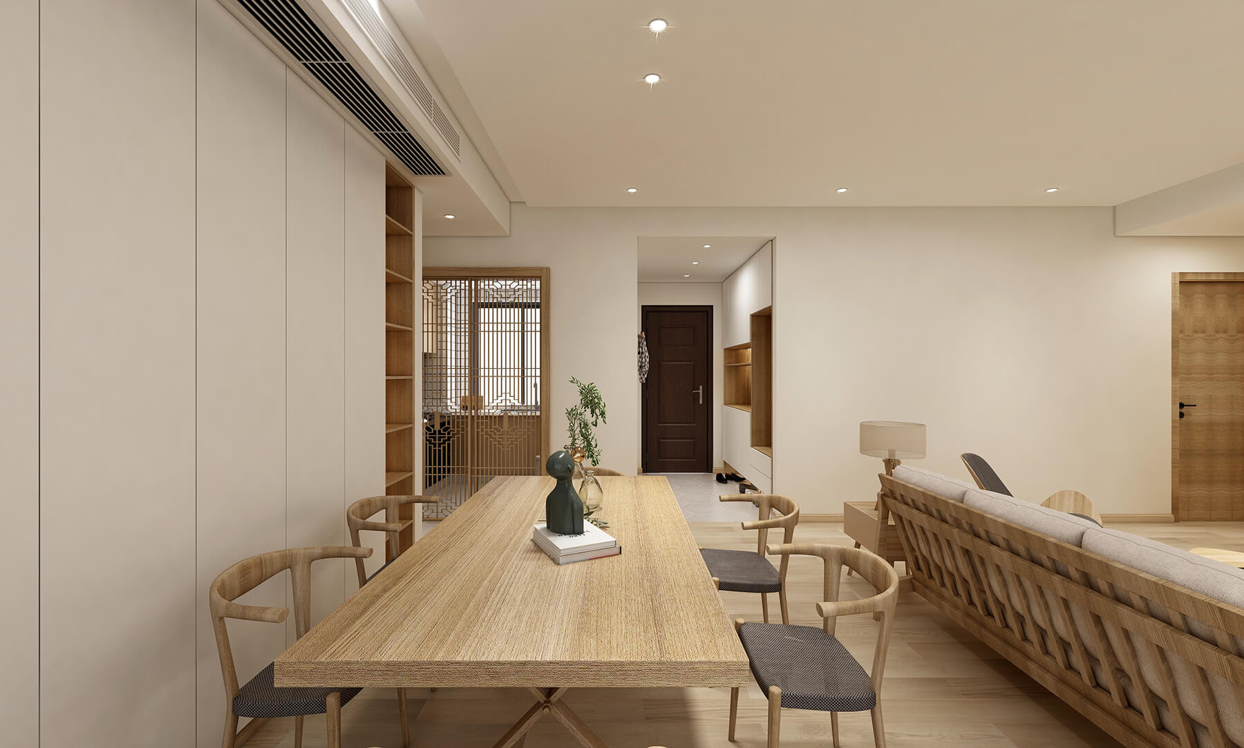 瀏覽量:693本案例為152㎡的日式風格,整體采用木質(zhì)結(jié)構(gòu),不尚裝飾,簡約簡潔。日式的干凈,可能再差一點點就不食人間煙火了??善植盍四敲匆稽c,所以在幽玄的意境下,煙火氣也完整地保留了下來。對原木質(zhì)感和陽光的熱愛,是日式溫暖的關(guān)鍵。柔美綠植和婆娑微妙的光影意境,又實現(xiàn)了日式美學的意境追求,打造溫暖自然的意境。