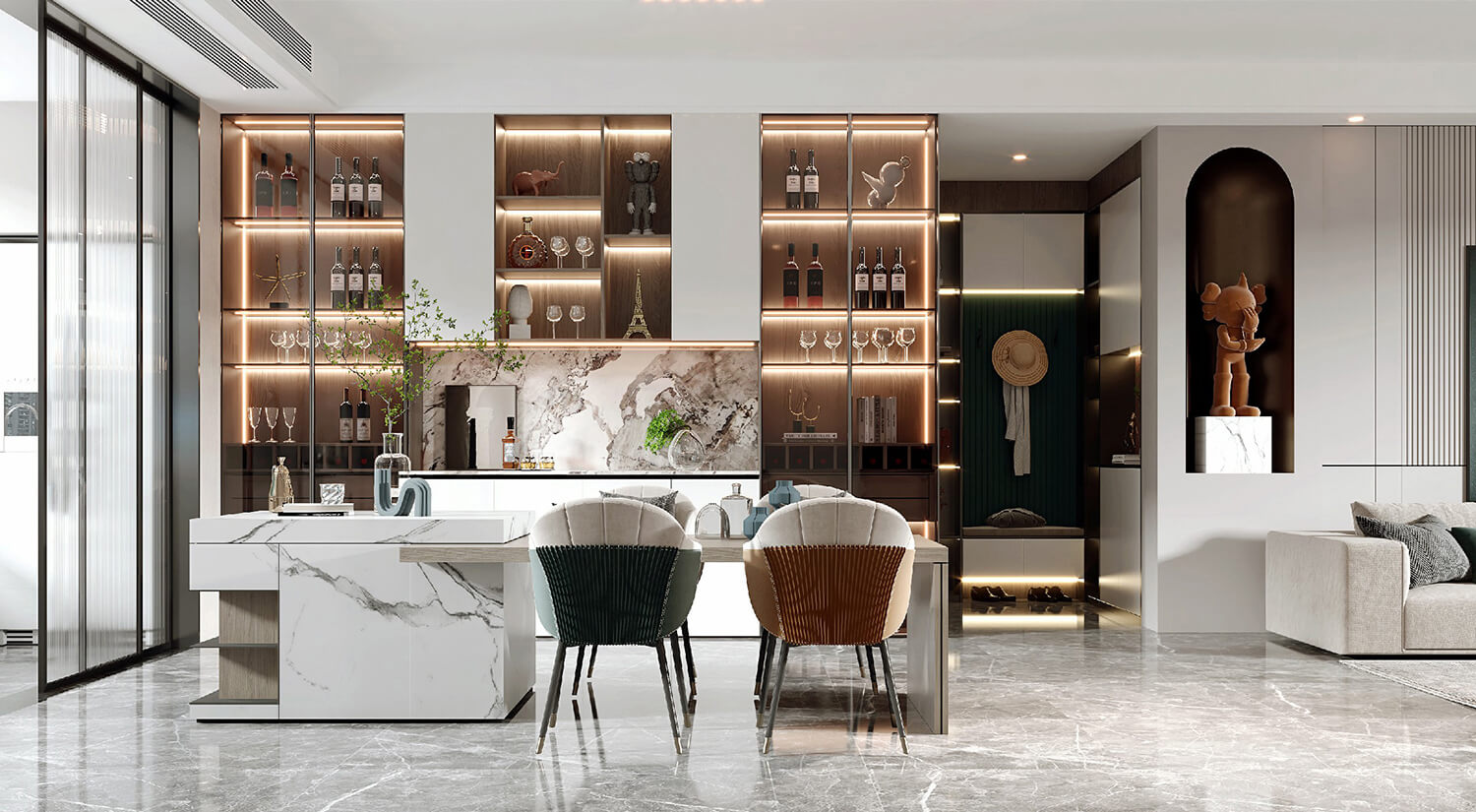 瀏覽量:513在現(xiàn)代輕奢風(fēng)格的裝修中,還需要考慮空間布局和功能性的結(jié)合。一般會將客廳、餐廳打通,形成開放式的空間,增加通透性和流動感。暖色線燈烘托家的溫馨氛圍,享受與家人一起用餐的美好時光。